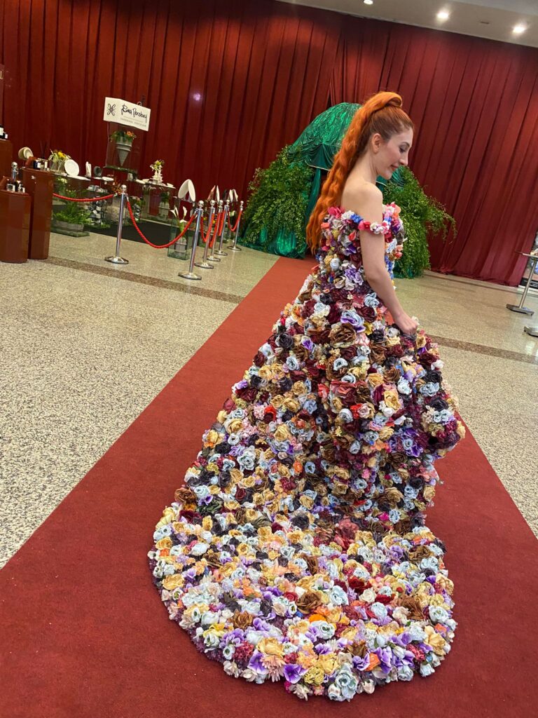 Almanya'da düğün organizasyonları yapan tasarımcı Birsel Kabahor, tamamen gerçek güllerden tasarladığı nefes kesici bir elbise ile fuarın en çok fotoğraflanan köşelerinden birine imza attı.